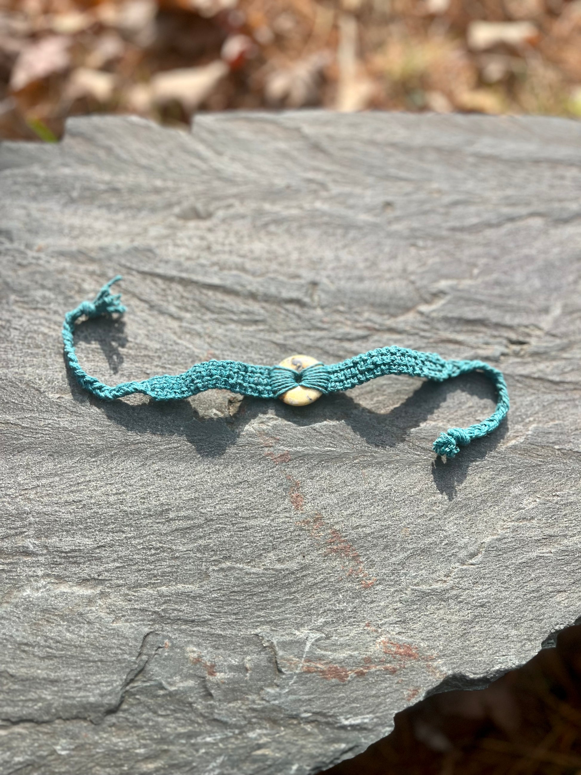 An amazing chunky hemp macrame bracelet made by an old school hemp bracelet maker, think Grateful Dead lot circa 90s.